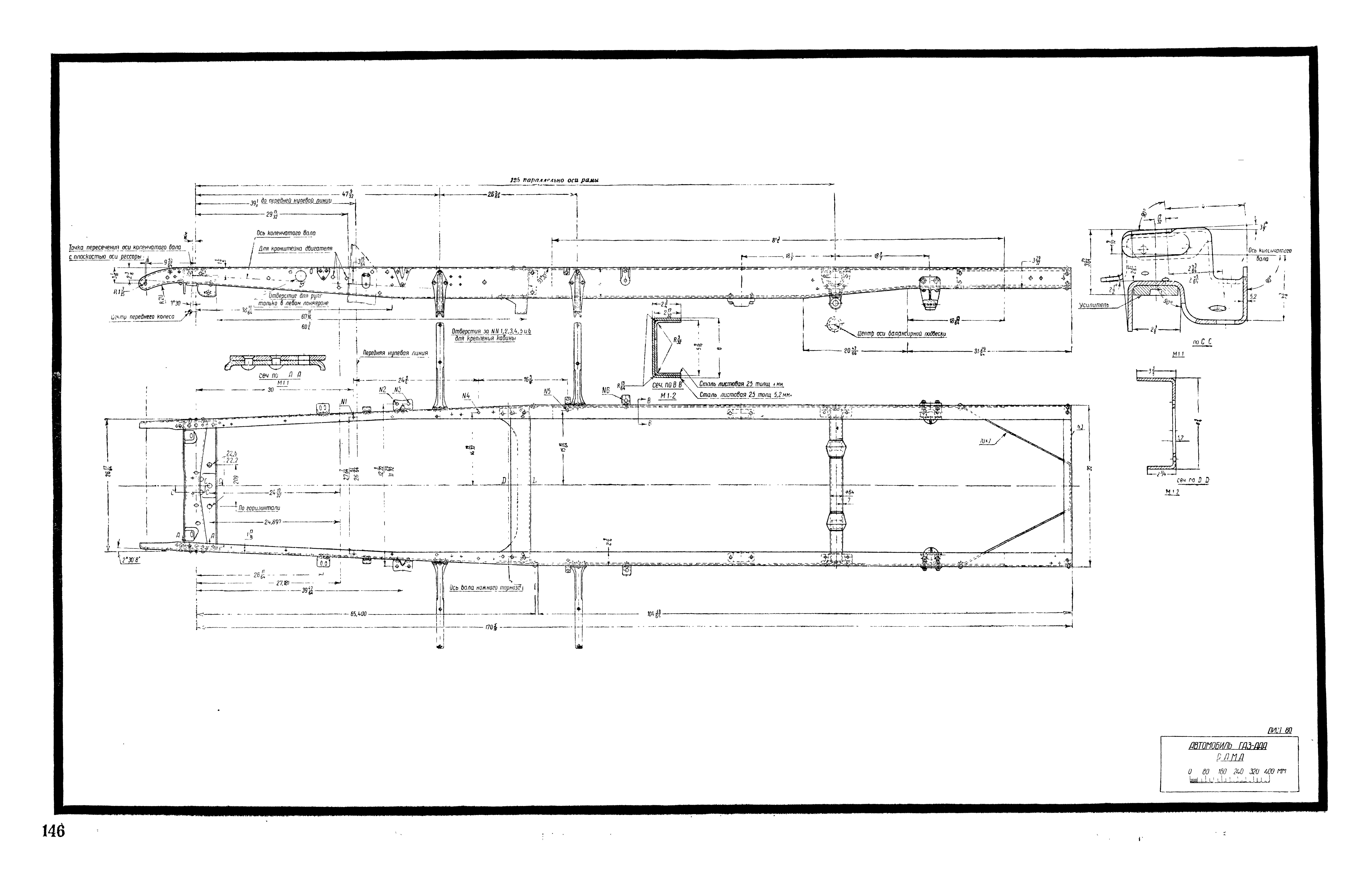 Фиг. 30. Разрез по ведущему мосту вдоль полуоси автомобиля ГАЗ мод. ААА-НАТИ-30
