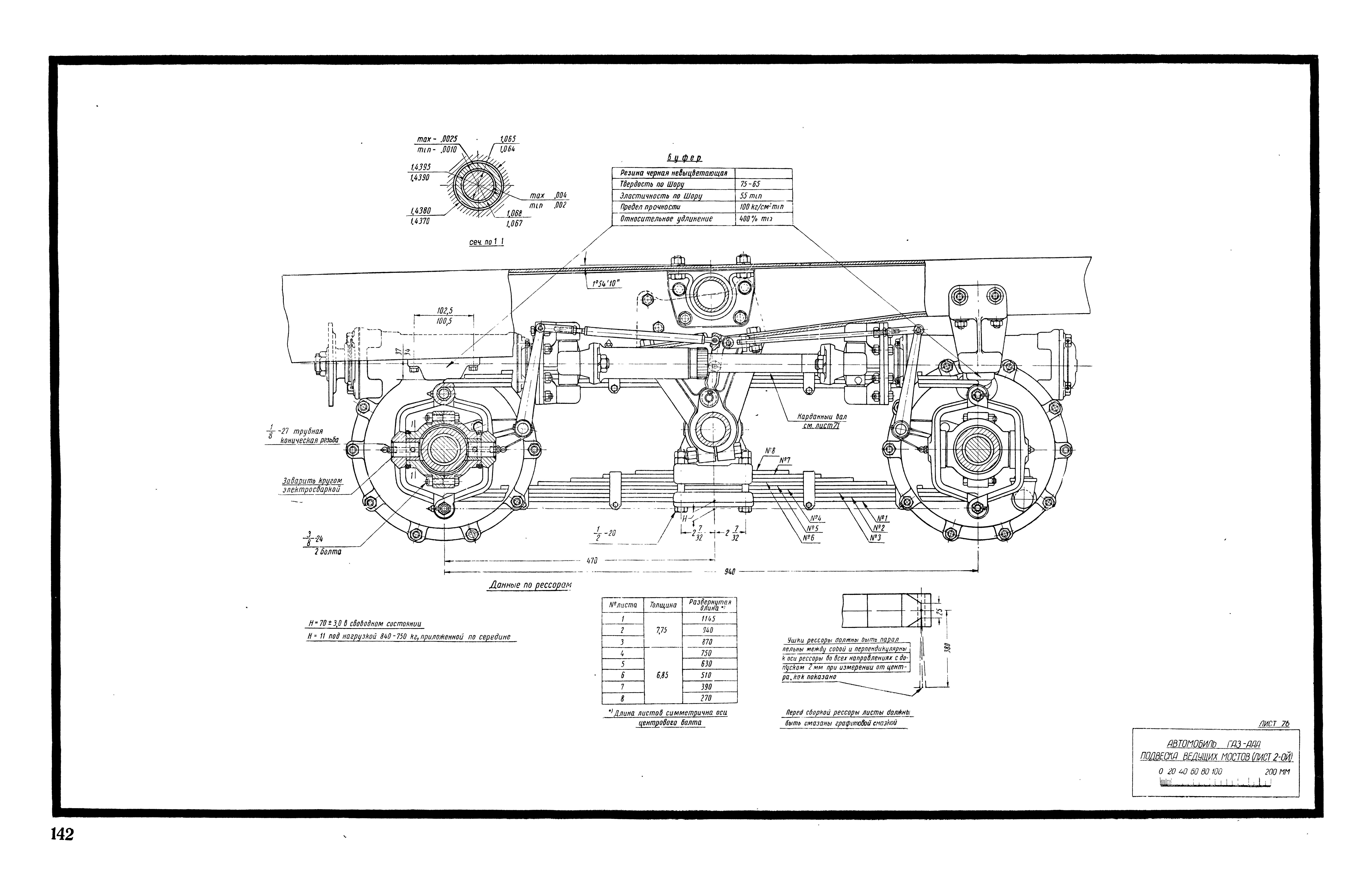 Фиг. 29. Подвеска задних мостов автомобиля ГАЗ мод. ААА-НАТИ-30